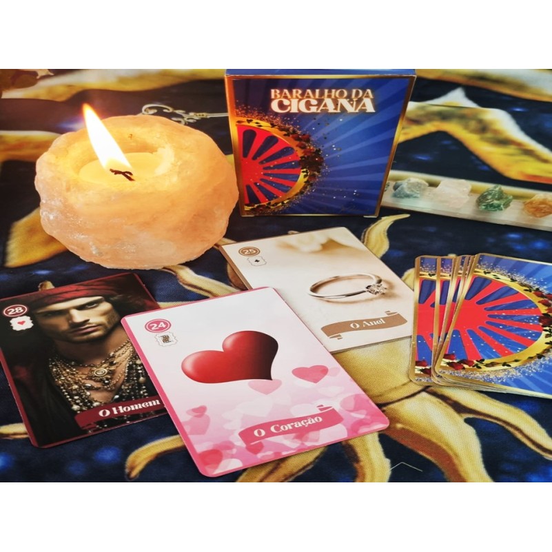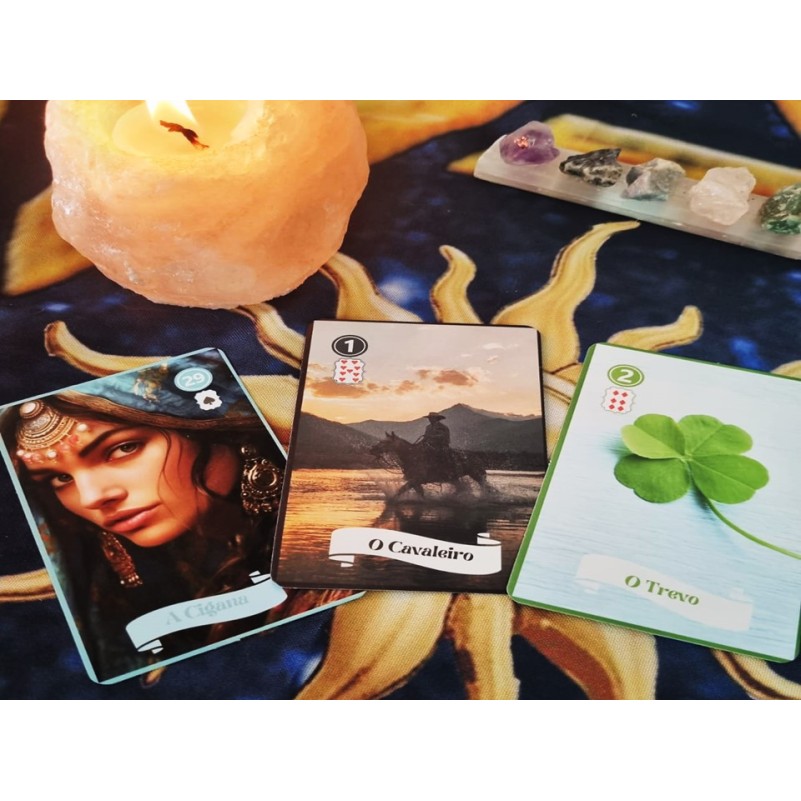 O Baralho Cigano, também conhecido como Tarô Cigano ou Petit Lenormand, é composto de 36 Cartas. Cada uma das cartas traz um símbolo ou imagem que tem um significado que pode ser interpretado para prever o futuro, trazer um direcionamento para o momento presente, responder perguntas de dúvidas do dia-a-dia ou questões que você queira saber, pode ser feito leitura para temas específicos como amor, saúde, profissional, entre outros.