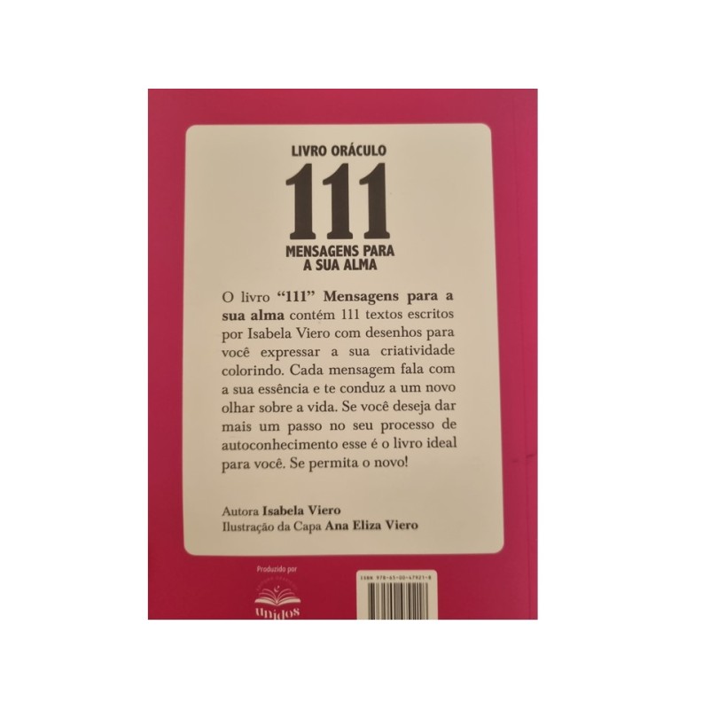 Livro “111” Mensagens para a sua alma contém 111 textos escritos por Isabela Viero com desenhos para você expressar a sua criatividade colorindo.