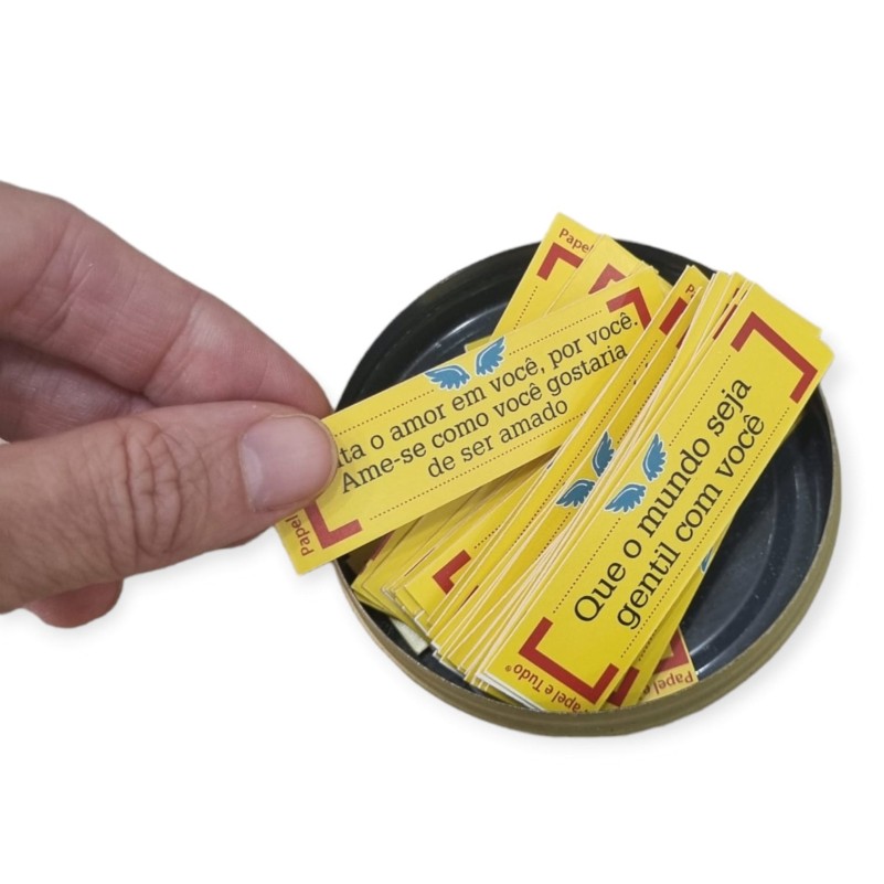 Latinha contendo pequenas bênçãos em forma de mensagens para você.